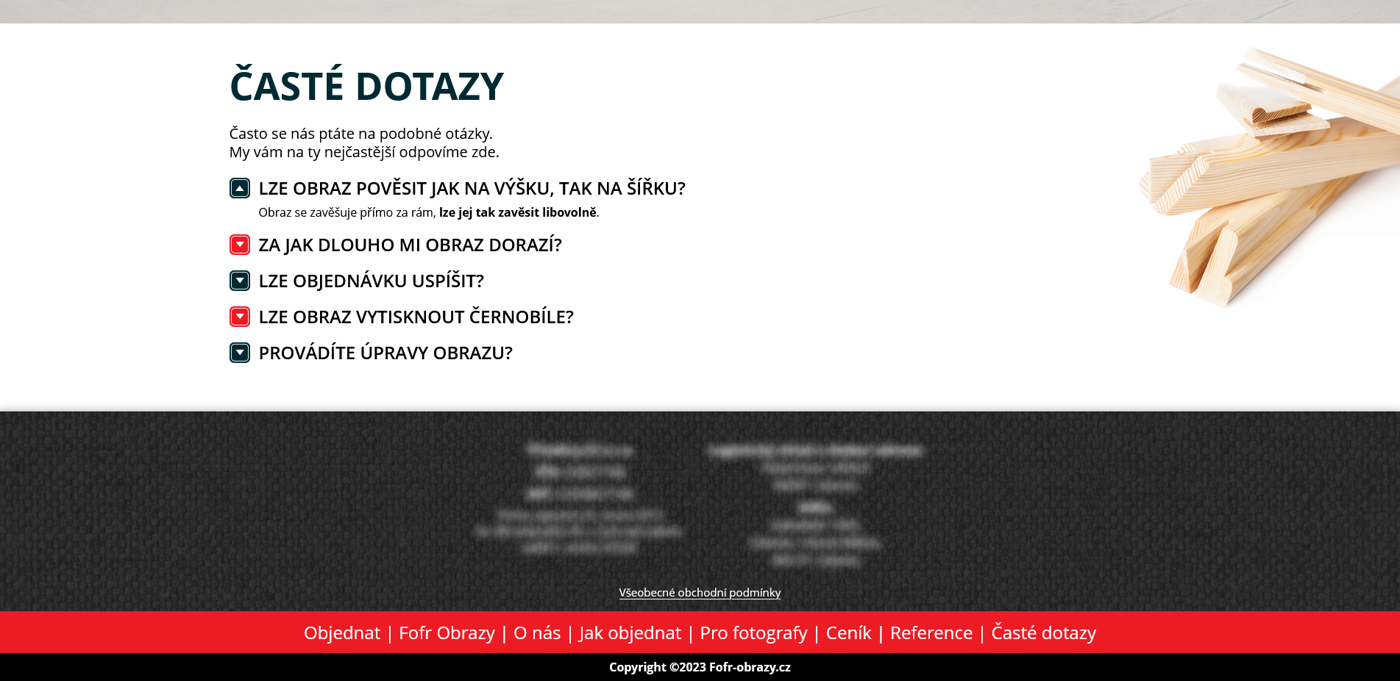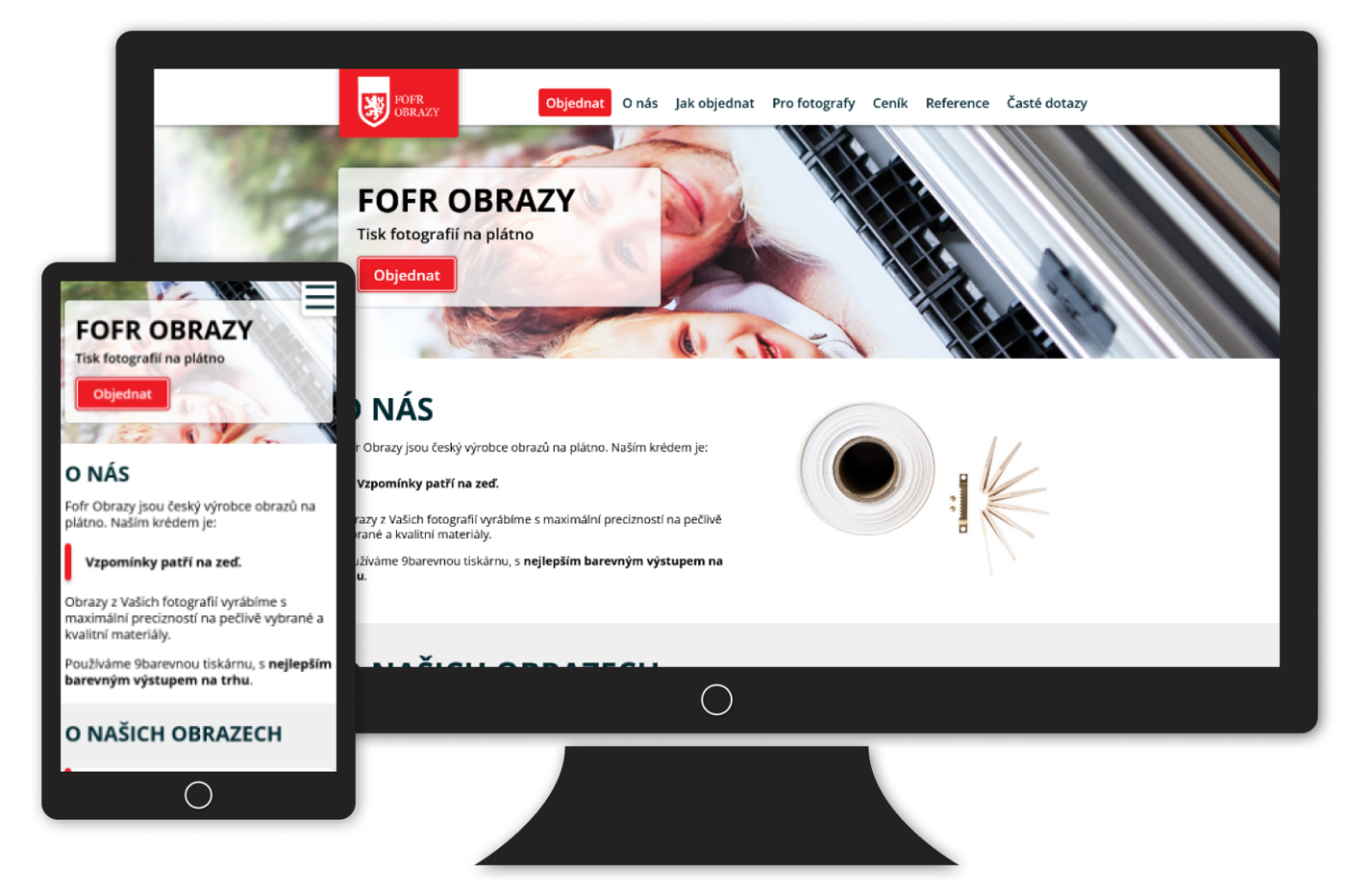 Web Fofr Obrazy je prezentační a prodejní web pro obrazy a další produkty na míru. Stránky se napojují na existující objednávkový front-end a administraci, čímž lze jednoduše a efektivně synchronizovat prvky jako upozornění a ceník.